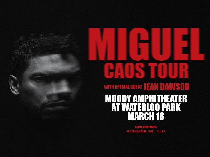 Miguel: CAOS Tour with special guest Jean Dawson is headed to Moody Amphitheater at Waterloo Park on March 18, 2026! Tickets go on sale Friday, October 31 at 10 AM at LiveNation.com.