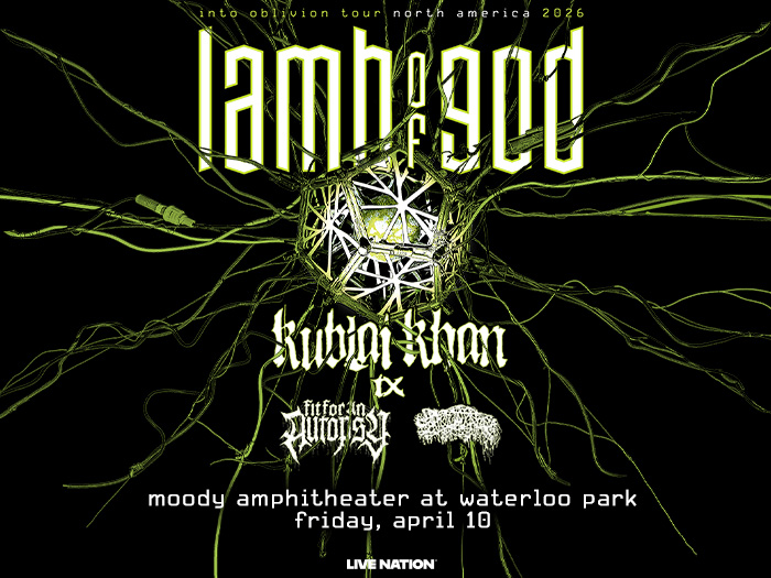 Lamb of God: Into Oblivion Tour with special guests Kublai Khan, Fit For An Autopsy, and Sanguisugabogg are headed to Moody Amphitheater at Waterloo Park on Friday, April 10, 2026! Tickets go on sale Friday, November 21 at 10 AM at LiveNation.com.