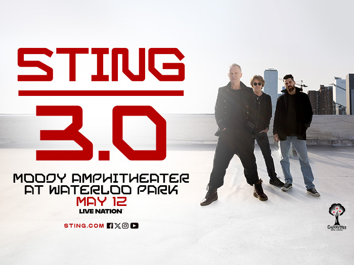 STING: STING 3.0 is headed to Moody Amphitheater at Waterloo Park on Tuesday, May 12, 2026! Tickets go on sale Friday, November 7 at 10 AM at LiveNation.com.