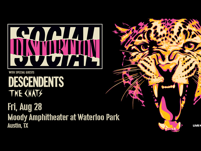 Social Distortion with special guests Descendents and The Chats are headed to Moody Amphitheater at Waterloo Park on Friday, August 28, 2026! Tickets go on sale Friday, February 27 at 10 AM at LiveNation.com.